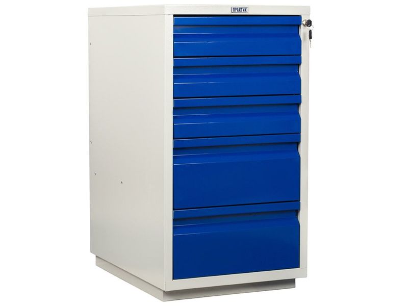 - Тумба укомплектована 5-ю выдвижными ящиками. Телескопические напрявляющие. Нагрузка на ящик 30 кг. Все ящики закрываются на центральный ключевой замок.